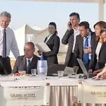 Het Grand Hotel Rimini met 5 sterren biedt een privé strandgedeelte en een restaurant aan en ligt in de wijk de wijk Jachthaven Rimini, maar 600 meter van het Dolfinarium van Rimini en op ongeveer 25 minuten wandelafstand van culturele bezienswaardigheden, zoals de Boog van Augustus. Er is een strandbar in het hotel in de buurt van het Federico Fellini Park. Gasten kunnen ook van spatherapie, chaise-longues en spadiensten profiteren.